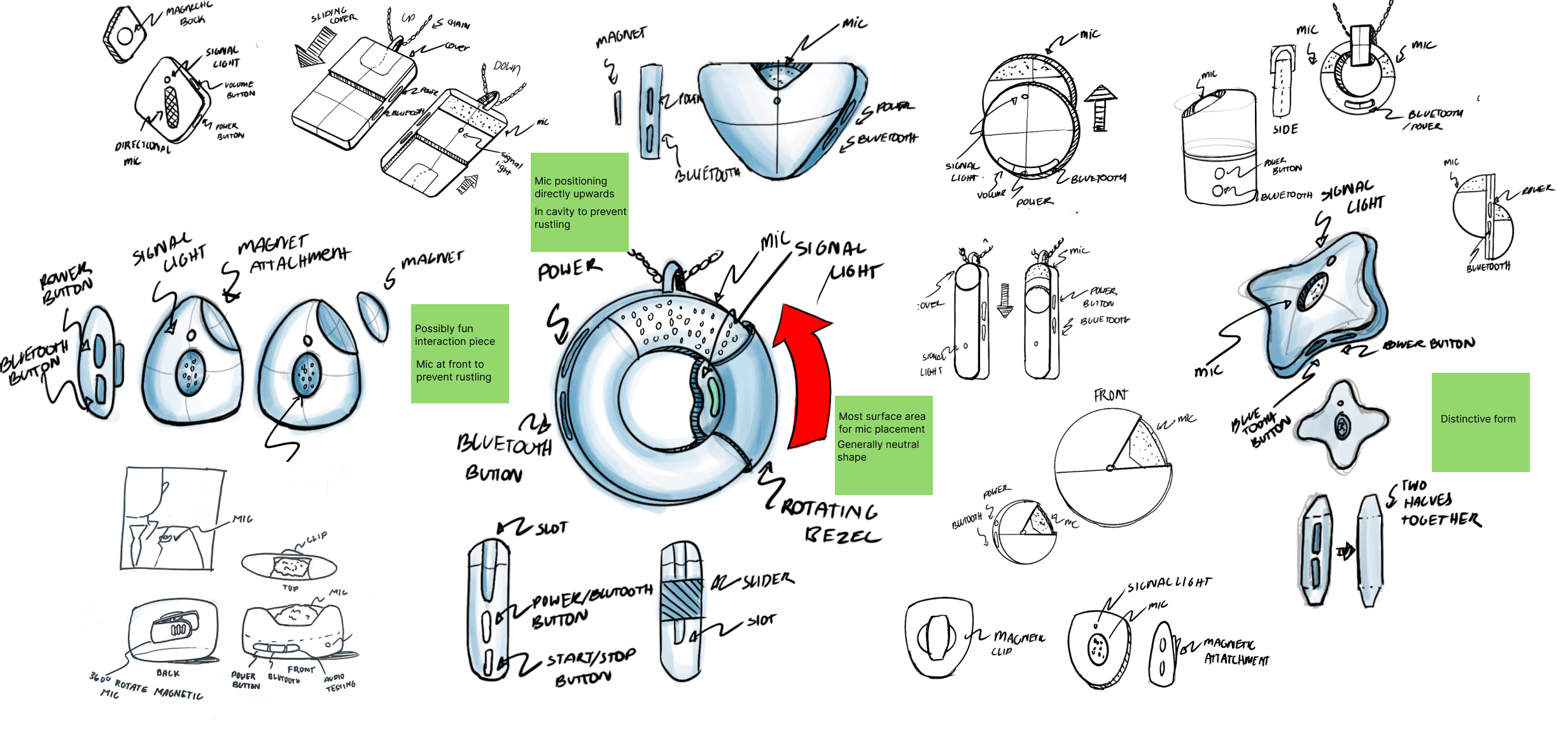 Microphone placement varied with clothing and collar height. The necklace form removed the guesswork, but neck size introduced a new variable which was resolved by offering three chain lengths.