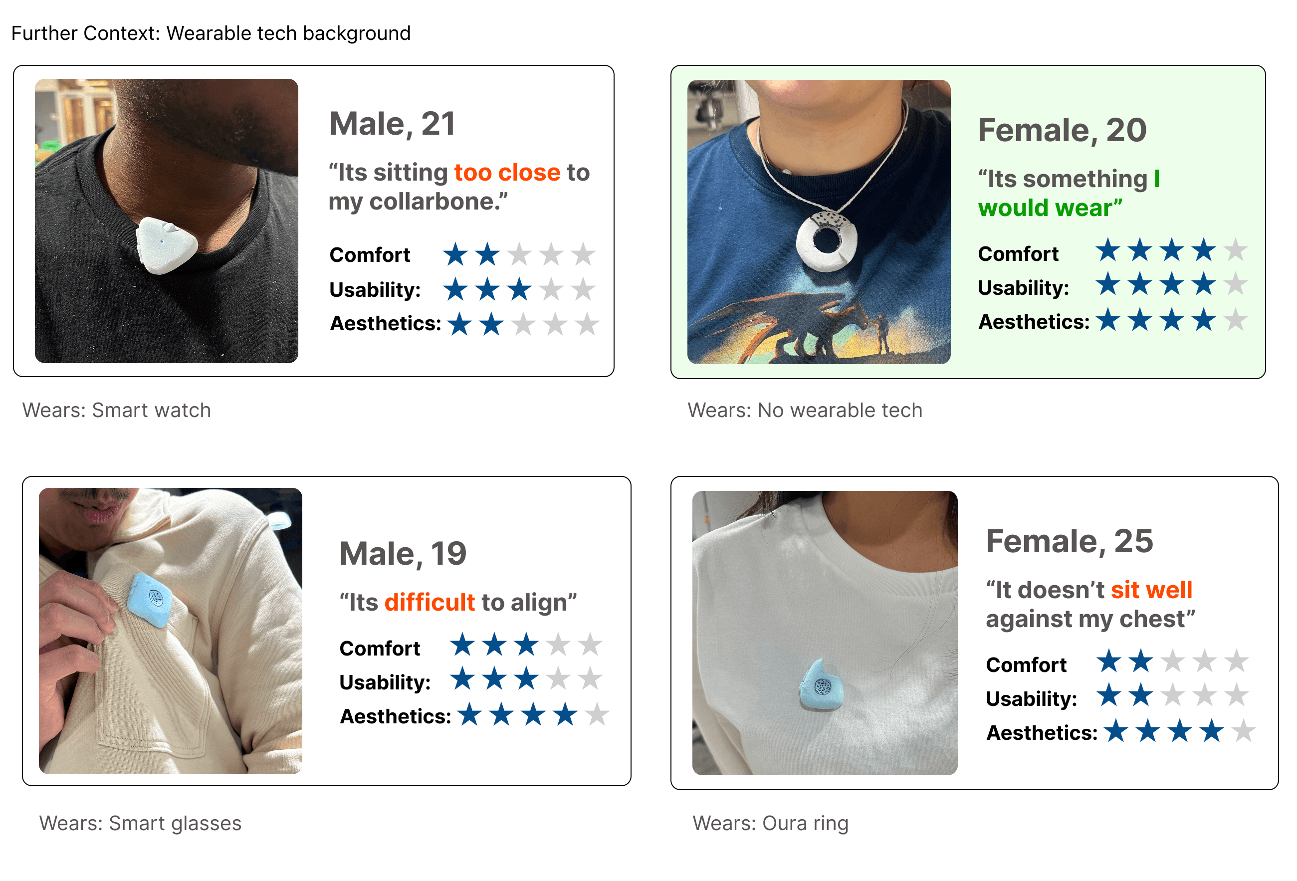 Three low fidelity prototypes were tested in a group of four, with a gender split of 2 men to 2 women.